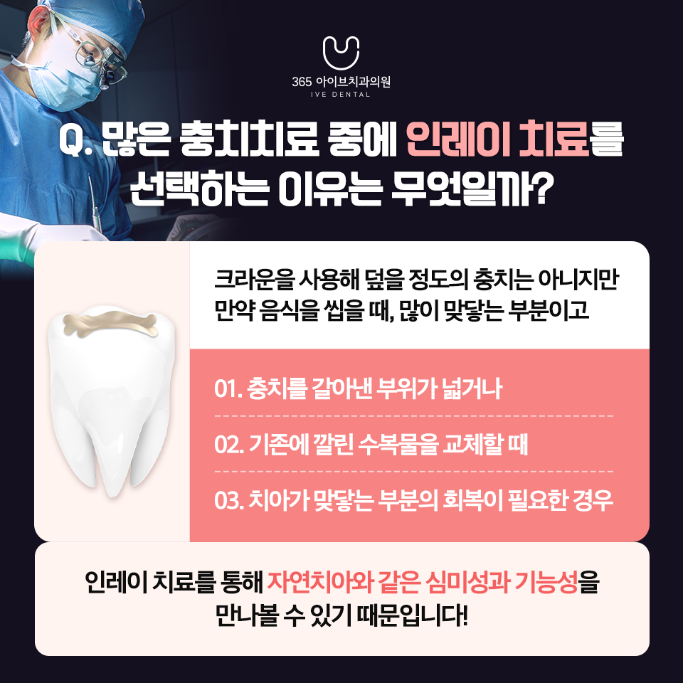 레진으로 치료할 수 없을 만큼 충치가 큰 경우에는 인레이라는 재료를 사용하게 되는데요.