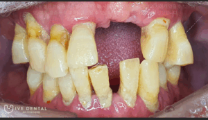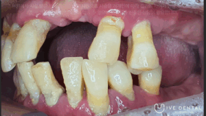 전체적으로 치아 상태가 좋지 않고 잇몸에 염증 및 부종이 매우 심하신 50대 환자분이신데요.