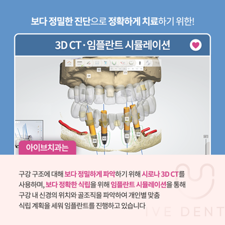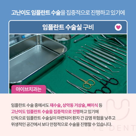 구강악안면외과 전문의가 진료하는 저희 아이브치과에서는 모든 임플란트 케이스를 시술하고 있습니다.