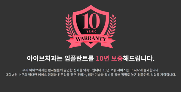 그래서 아이브치과에서는 자신 있게 임플란트를 10년 보증해 드리고 있습니다.