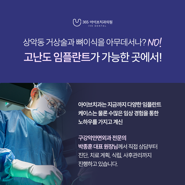 안녕하세요. 아이브치과 원장 구강악안면외과 전문의 박종훈 입니다.