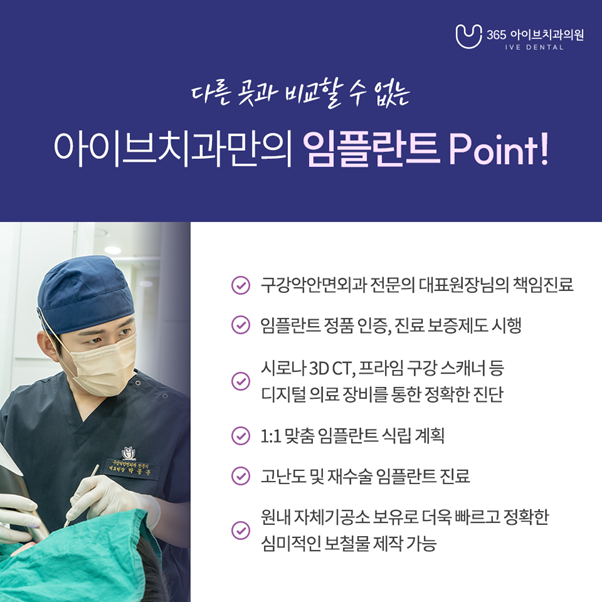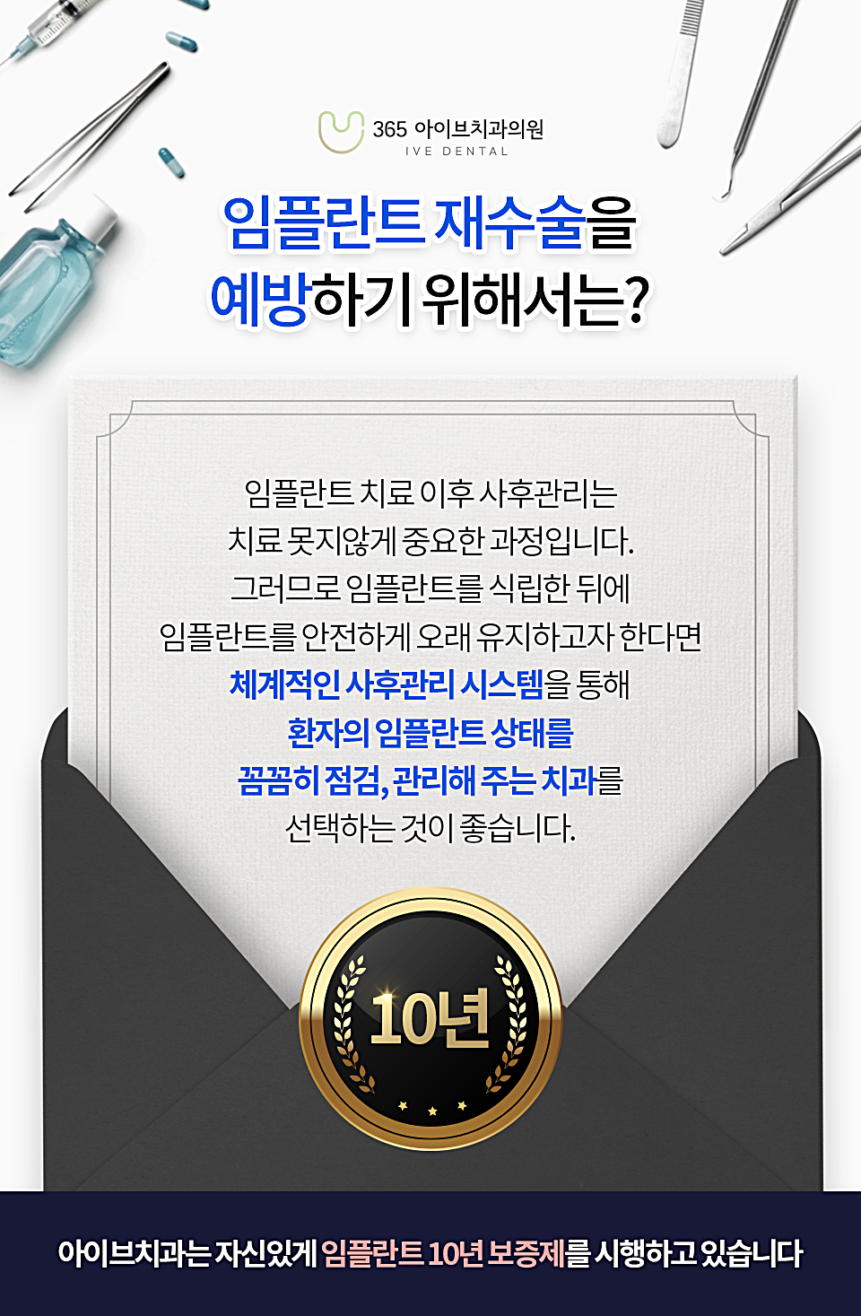 그래서 그 자신감으로 저희 아이브치과에서는 임플란트 10년 보증제도를 실시하고 있는데요.