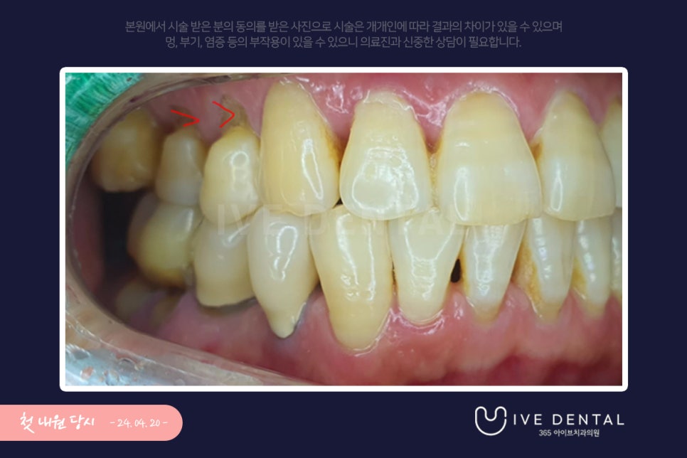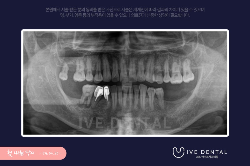 1차 수술 후의 사진입니다. 살릴 수 있는 치아는 최대한 살리고 염증이 너무 심하여 빠지기 직전의