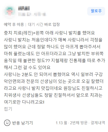 저희 치과에서 사랑니를 발치하신 분들께서 좋은 후기도 남겨주시어 볼 때마다 더더욱 보람을 느끼는데요.