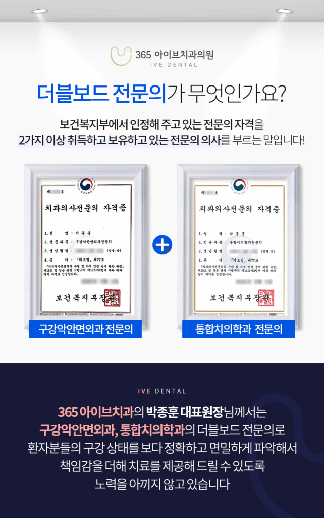아이브 치과 웹블로그는 구강악안안면외과 & 통합치의학과 더블보드 전문의 대표원장의