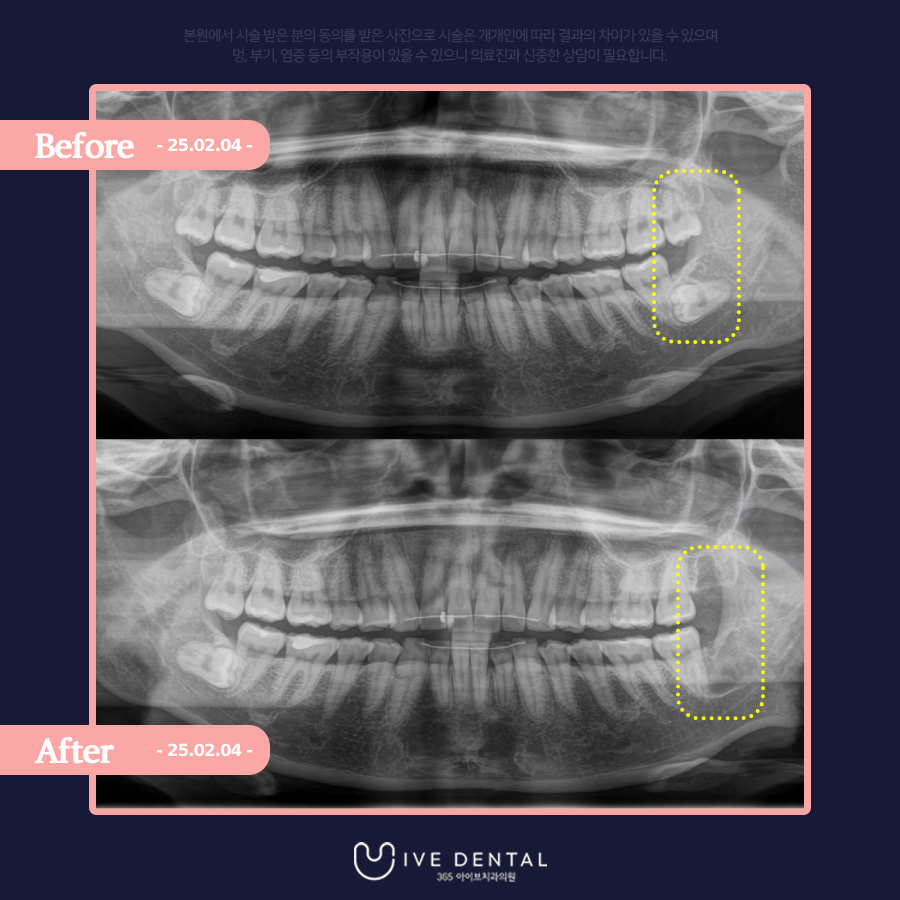 저희 아이브치과에서는 양쪽 사랑니 4개 모두 하루에 발치 진행이 가능하지만, 환자분께서는 왼쪽 사랑니부터 발치를 원하셨습니다.